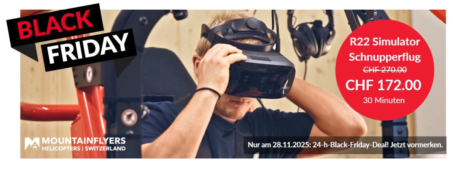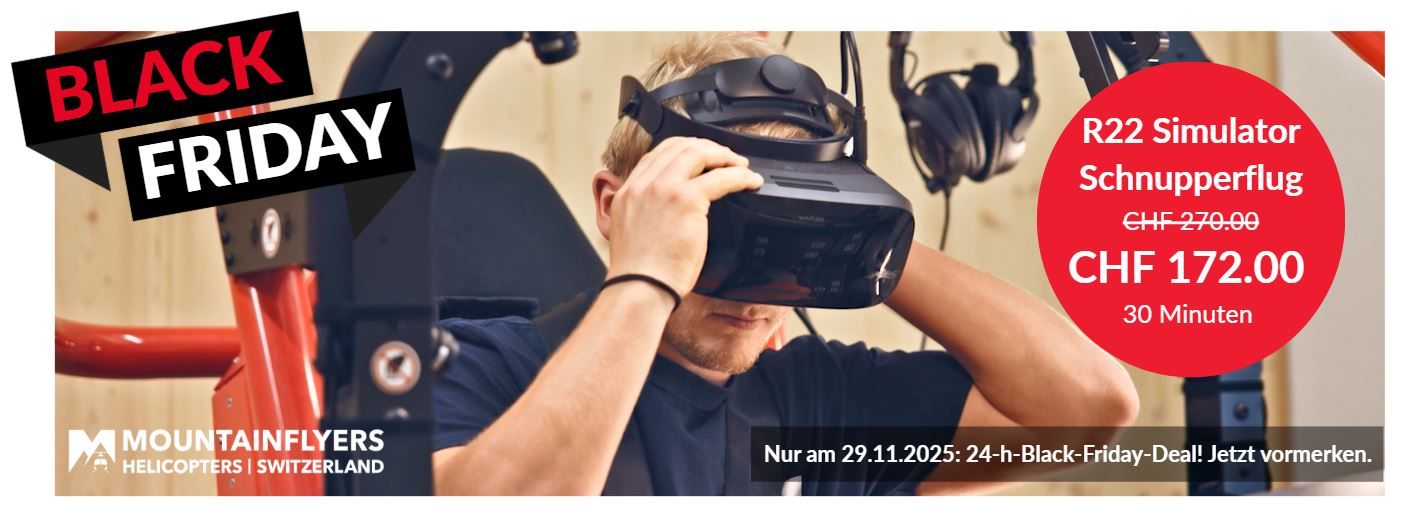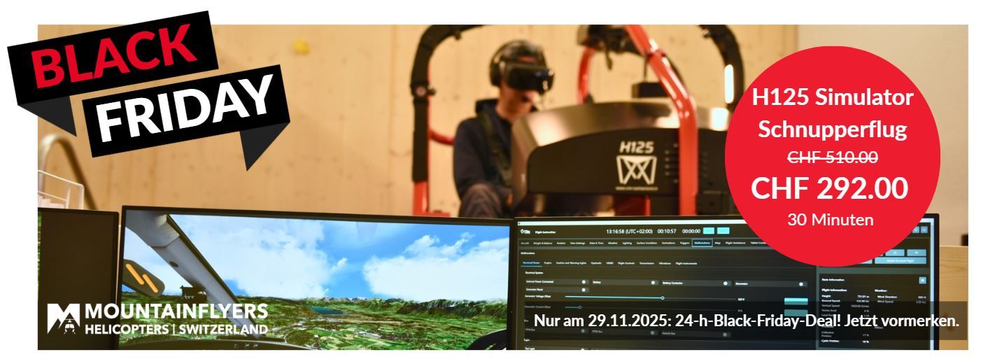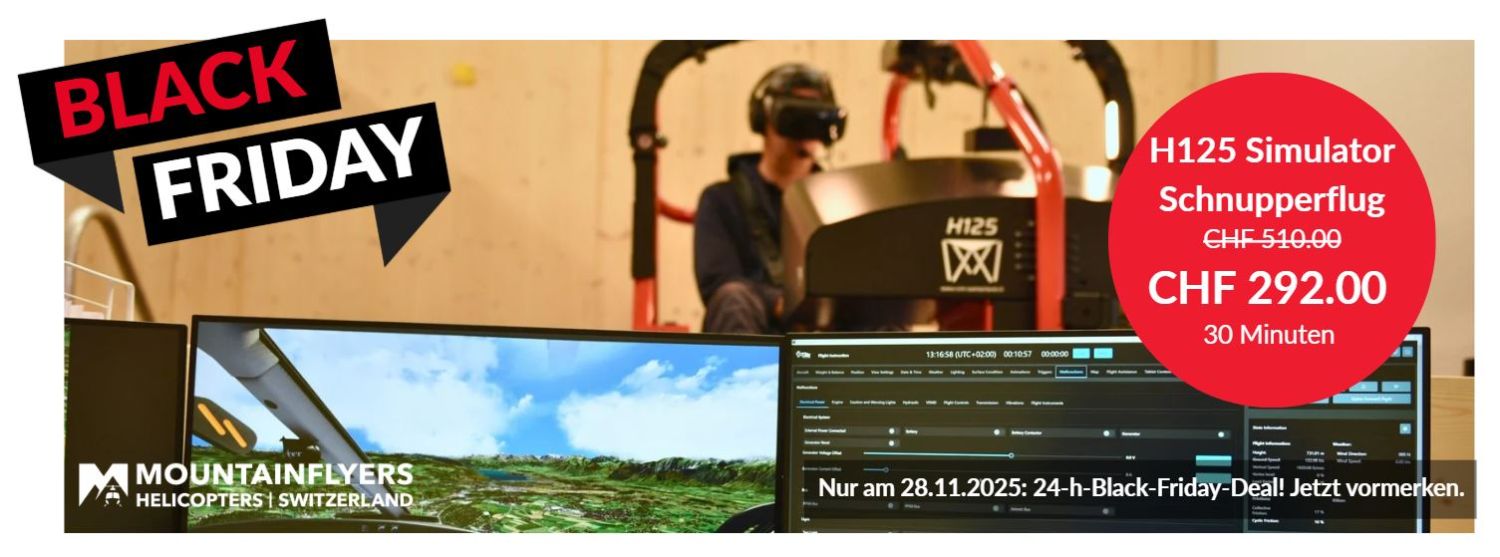 Hinweis: Die Simulatorzeit im Rahmen der Black Friday Aktion ist nicht anrechenbar für offizielle Flugstunden oder Ausbildungen.