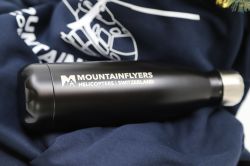 Trinkflasche mit Logo Mountainflyers und Jubiläums-Emblem