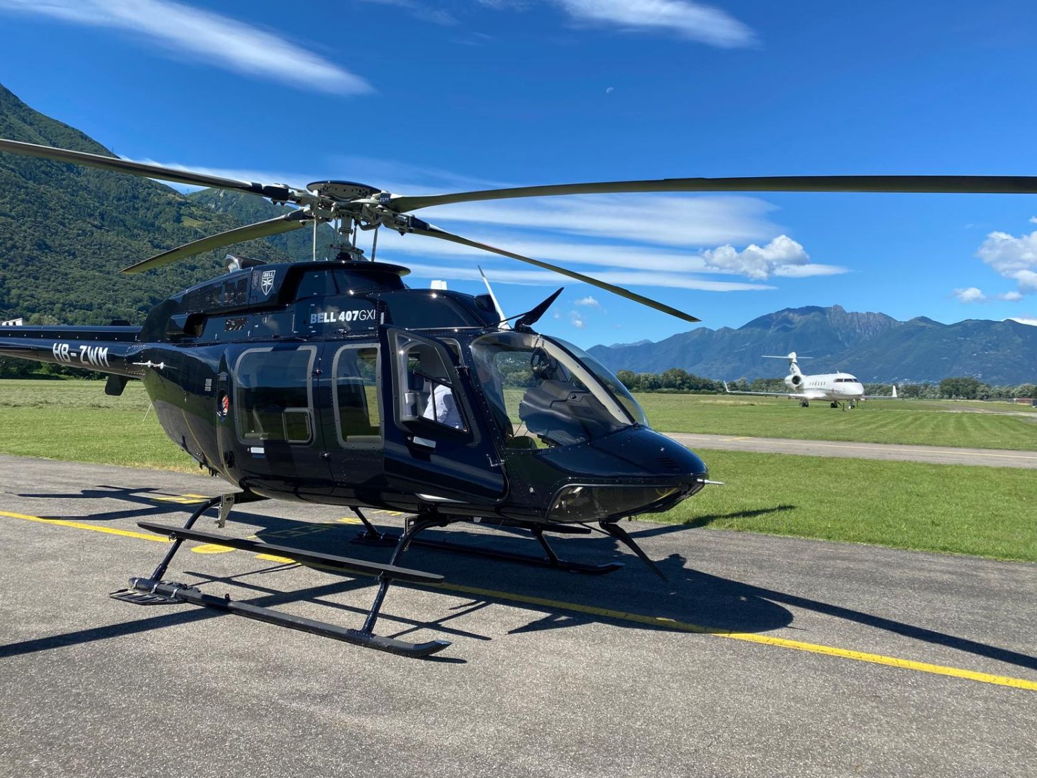 The Bell 407 GXi has a total of 6 passenger seats and offers excellent all-round visibility. At Mountainflyers, the helicopter is used for sightseeing, taxi and sling load operation flights as well as for pilot training. The Bell 407 GXi has a fully autonomous digital turbine control system (FADEC), which reduces the pilot's workload and minimizes the risk of turbine damage.